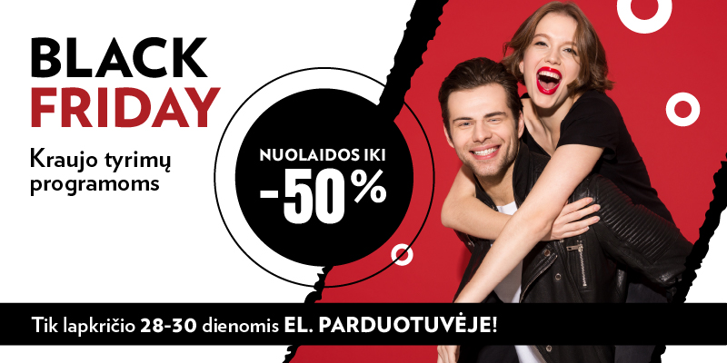 Lapkričio 28-30 dienomis „Antėja“ skelbia BLACK FRIDAY pasiūlymą – atrinktiems tyrimų paketams taikome iki -50 % nuolaidas! Pasirūpinkite savimi dar prieš šventinį šurmulį!