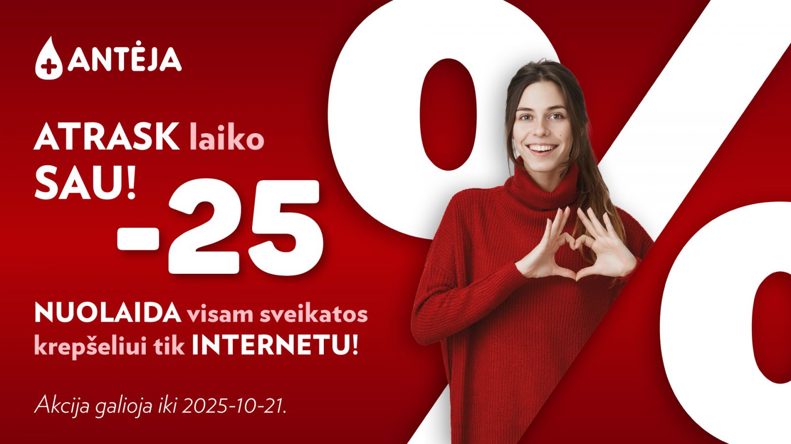 *Nuolaida netaikoma: alergenų ir maisto netoleravimo tyrimams ir programoms, molekulinės diagnostikos (PGR), genetiniams, COVID PGR, COVID Antigenų tyrimams bei skiepams.