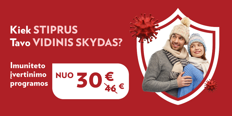 Norintiems pasinaudoti pasiūlymu akcijos laikotarpiu būtina įsigyti tyrimus e. parduotuvėje arba fiziniame padalinyje nurodytu akcijos laikotarpiu. Akcija galioja tik apmokėjus paslaugas akcijos galiojimo laikotarpiu.